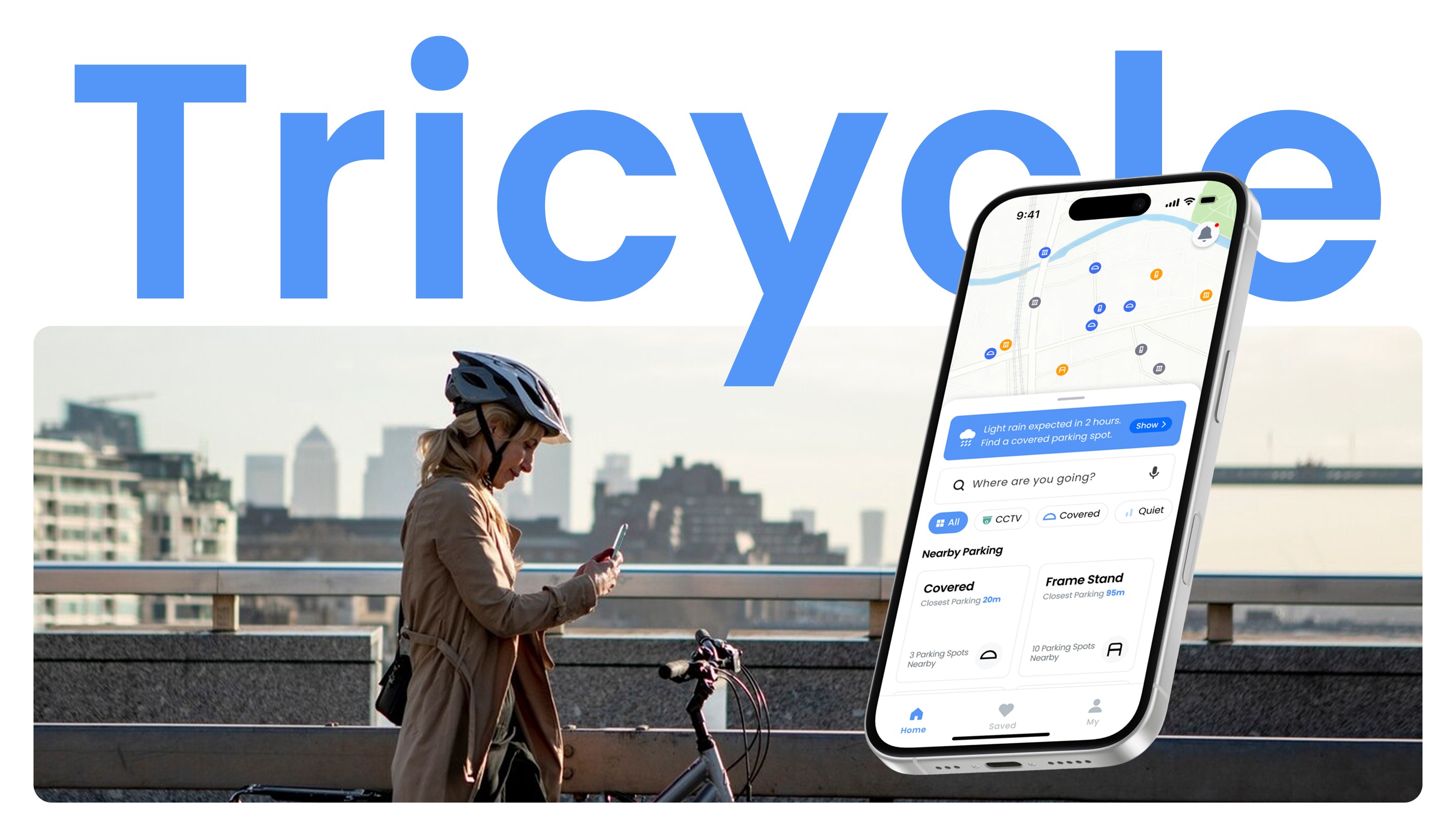 Tricycle is a mobile application designed to solve one of the most pressing issues for unban cyclists by helping them find safe, reliable, and personalised parking recommendations to ensure a seamless and stress-free cycling experience.